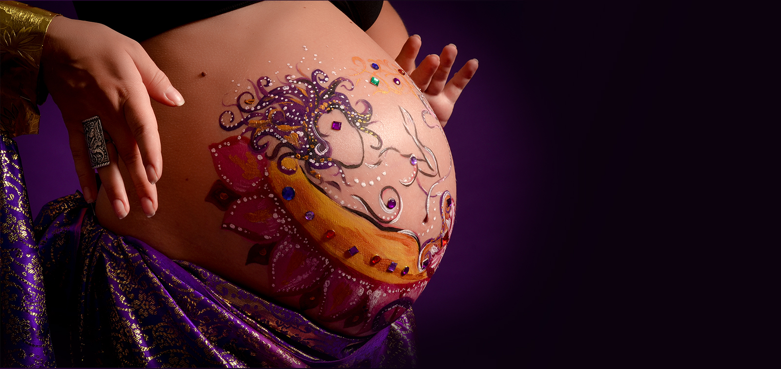Почувствуйте, как радуется Ваш малыш, как пинает кисточку, создающую на Вашем животике настоящий шедевр, образ-благословление на легкие, полные удовольствия и радости Роды!